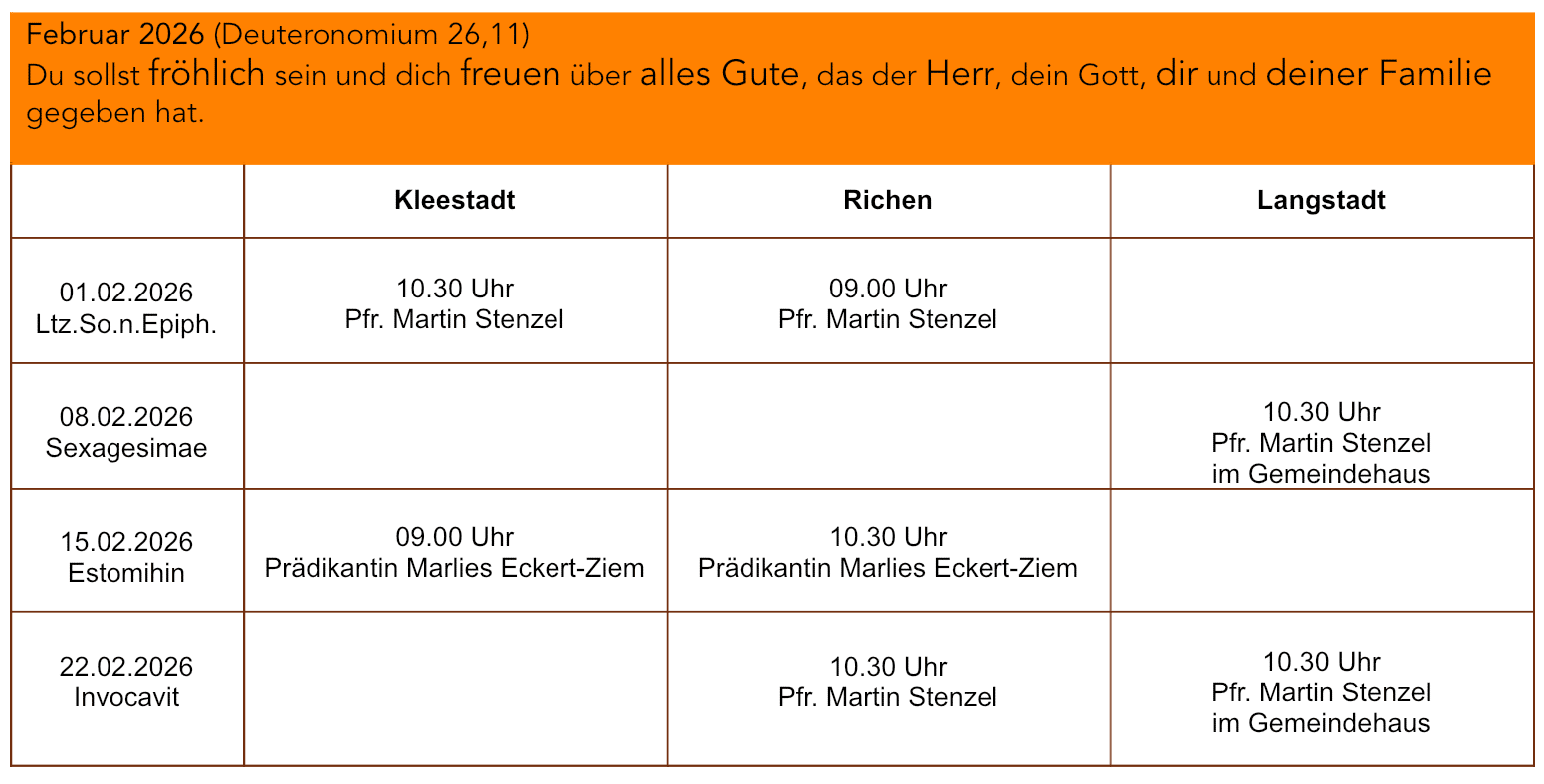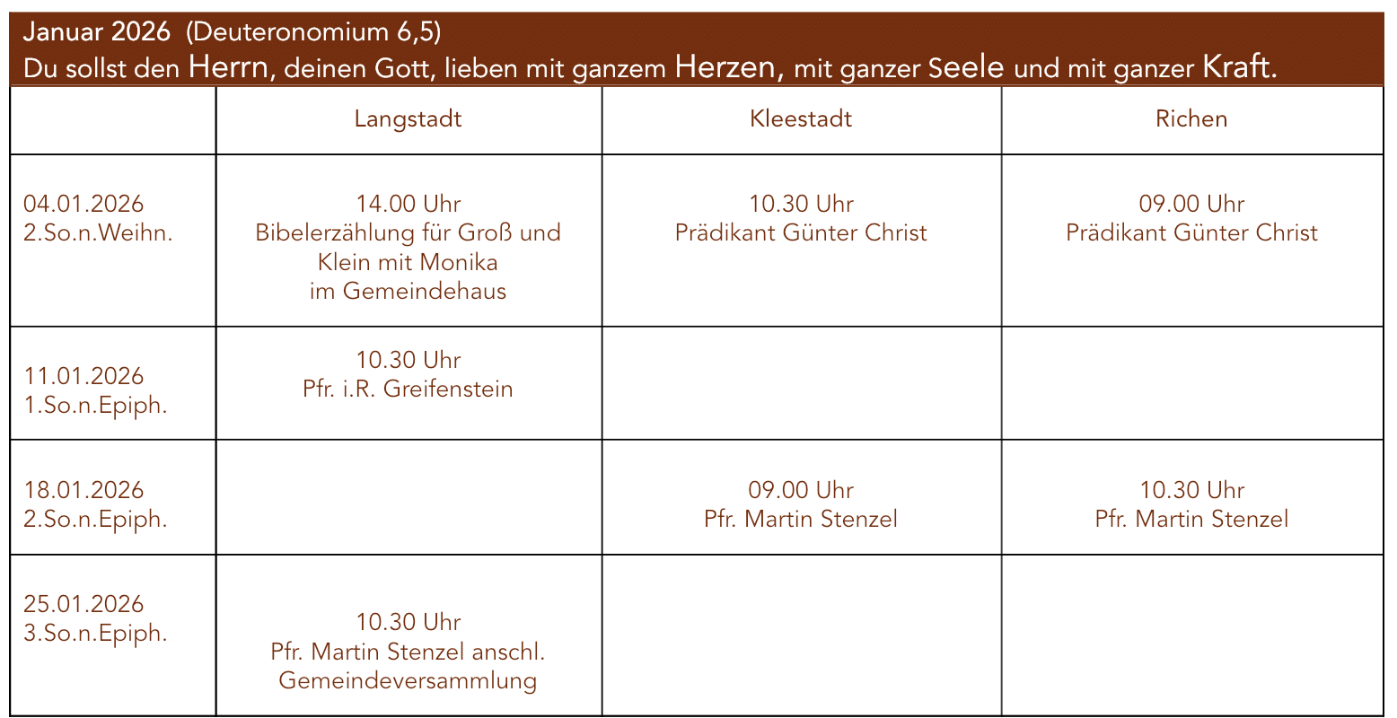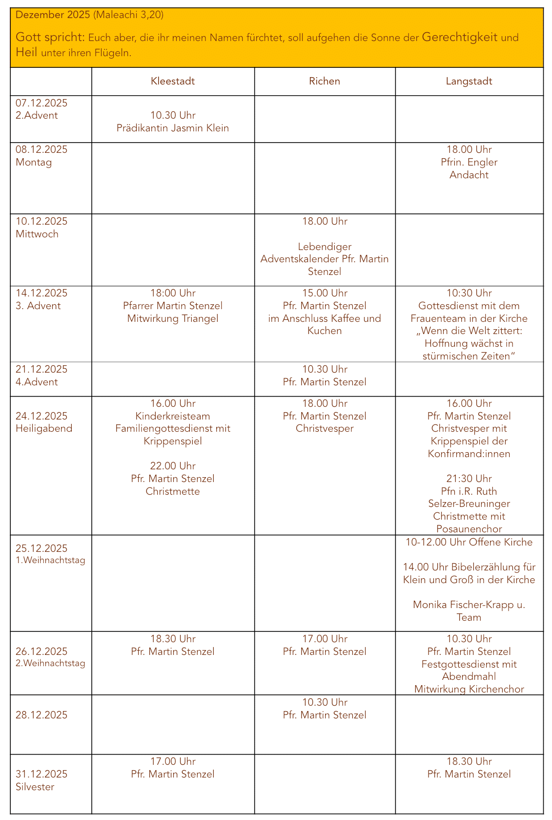 Termine in der Evangelischen Kirchengemeinde in Kleestadt und Richen